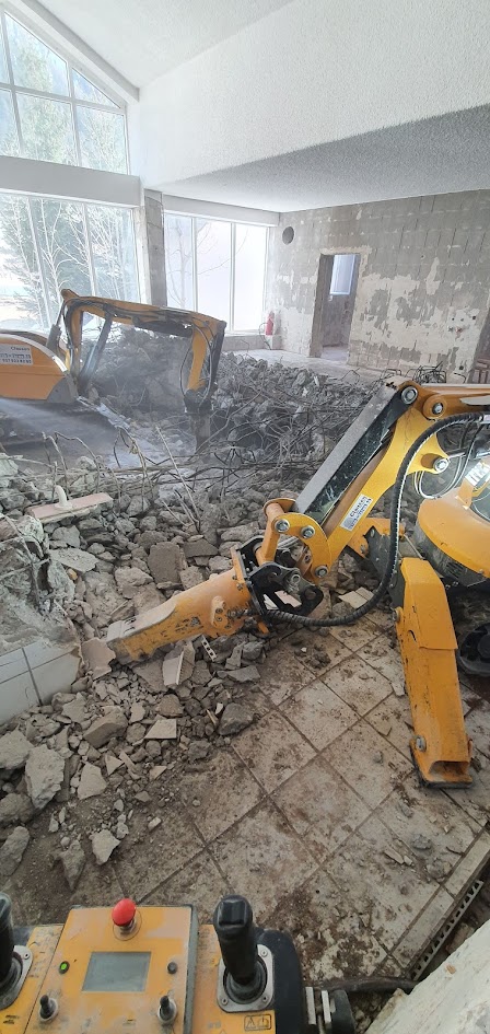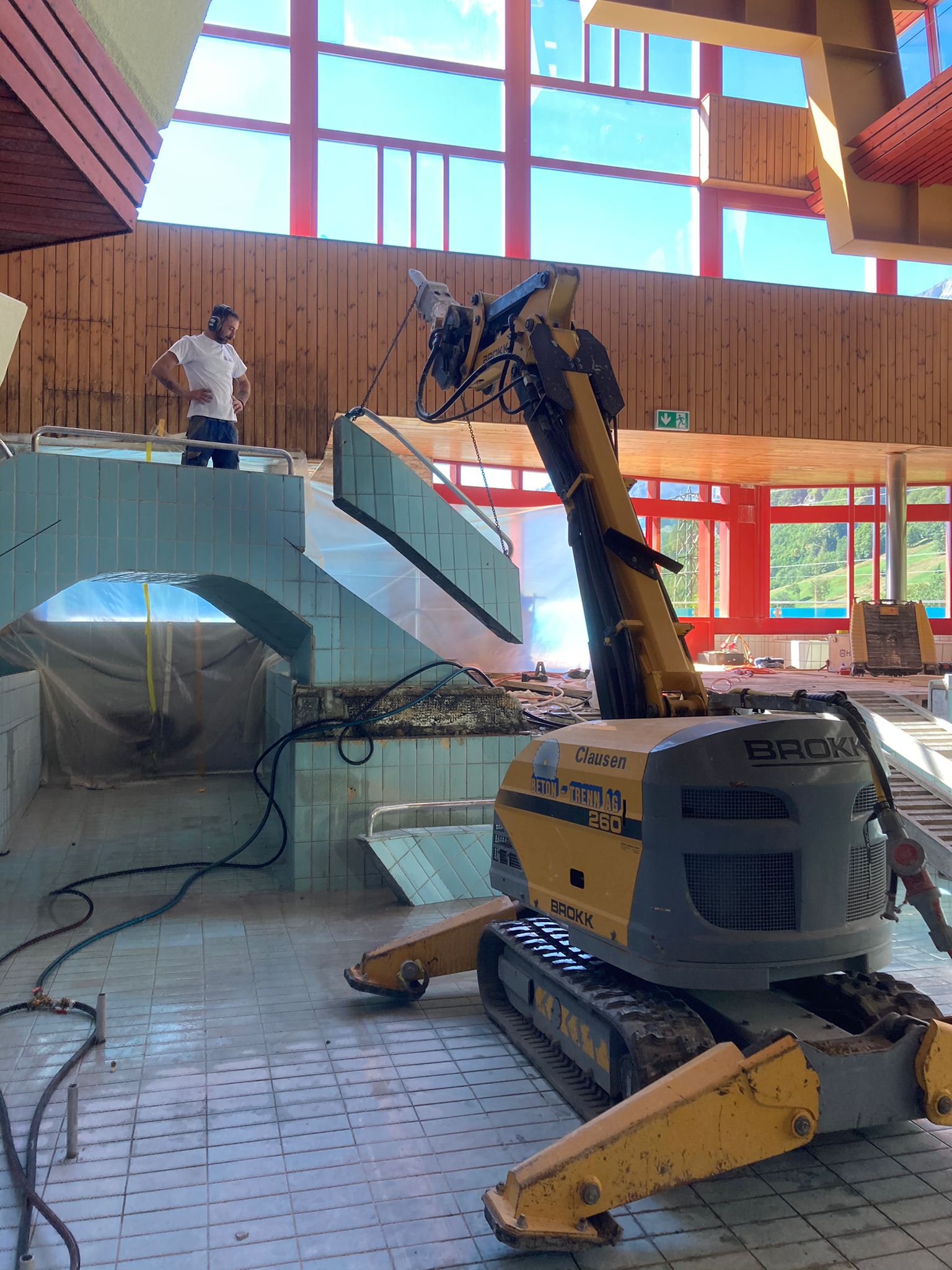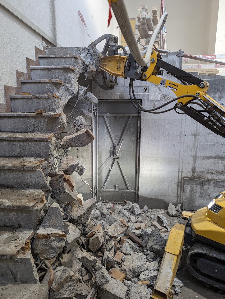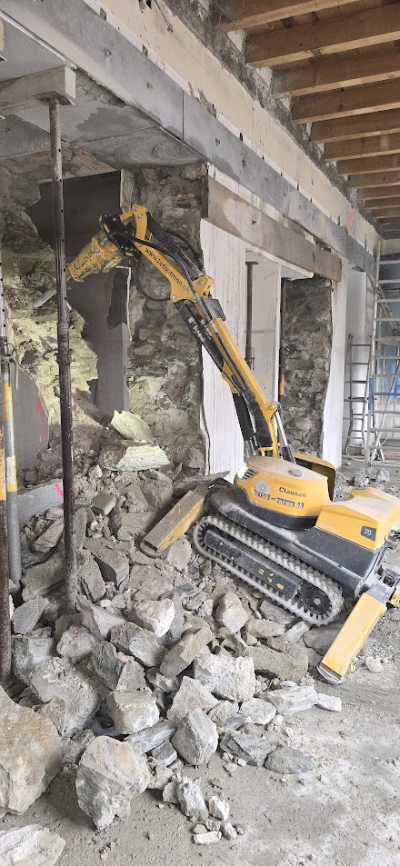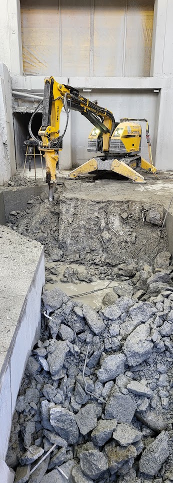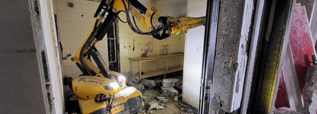 Die elektrischen Abbruchroboter von Brokk können mit einem Betonbeisser (Crusher) oder mit einem Spitzhammer ausgerüstet werden. Dadurch kann der Roboter flexibel an die jeweils benötigten Arbeiten angepasst werden. Der Antrieb erfolgt über Strom und es entstehen keine Abgase - dadurch eignet sich der Abbruchroboter bestens für Arbeiten im Gebäudeinneren.Das abgebaute Material wird von uns bei Bedarf abtransportiert und fachgerecht entsorgt (Muldenservice).
