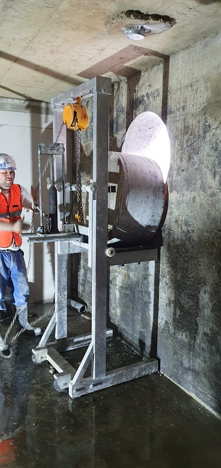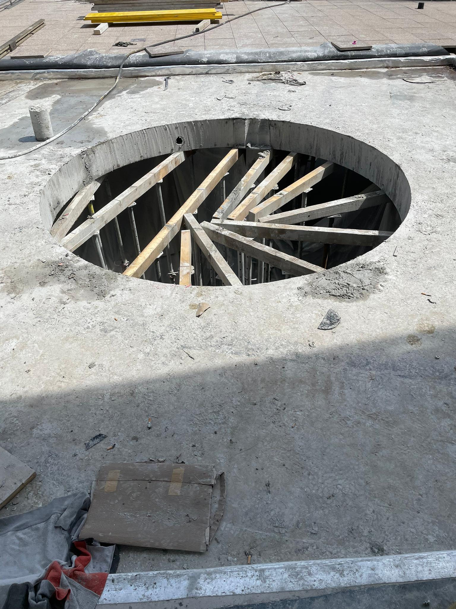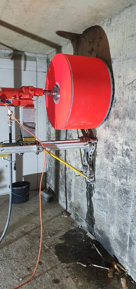Der Einsatz der Kreisseilsäge ermöglicht das Ausschneiden von kreisförmigen Öffnungen in beliebiger Stärke und Durchmesser von mehr als einem Meter.