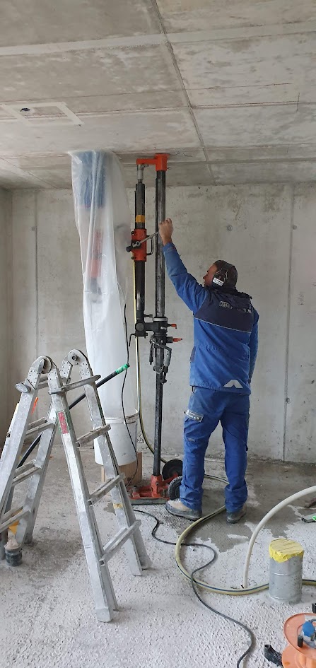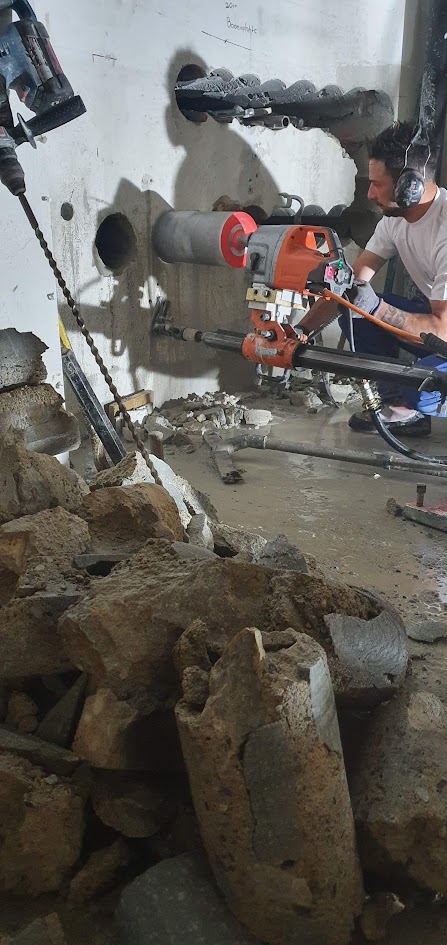 - Durchbrüche von runden Öffnungen für das Verlegen von Leitungsrohren, Kanälen (Elektro, Sanitär, Lüftung, Heizung etc.)
